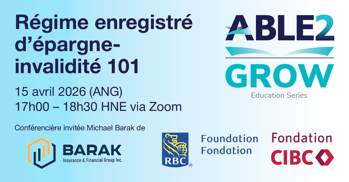 Participez au webinaire d’ABLE2 sur le Régime enregistré d’épargne-invalidité (REEI) 101, dans le cadre de notre série GROW sur la littératie financière. Cette séance vous fournira des renseignements essentiels sur les personnes à qui le REEI est destiné, les critères d’admissibilité et la façon de l’ouvrir et de le gérer.